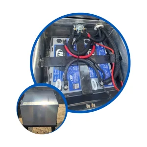 Caja de batería fabricada en aluminio con refuerzo de acero con kit de sujeción a chasis para máxima seguridad y durabilidad.
